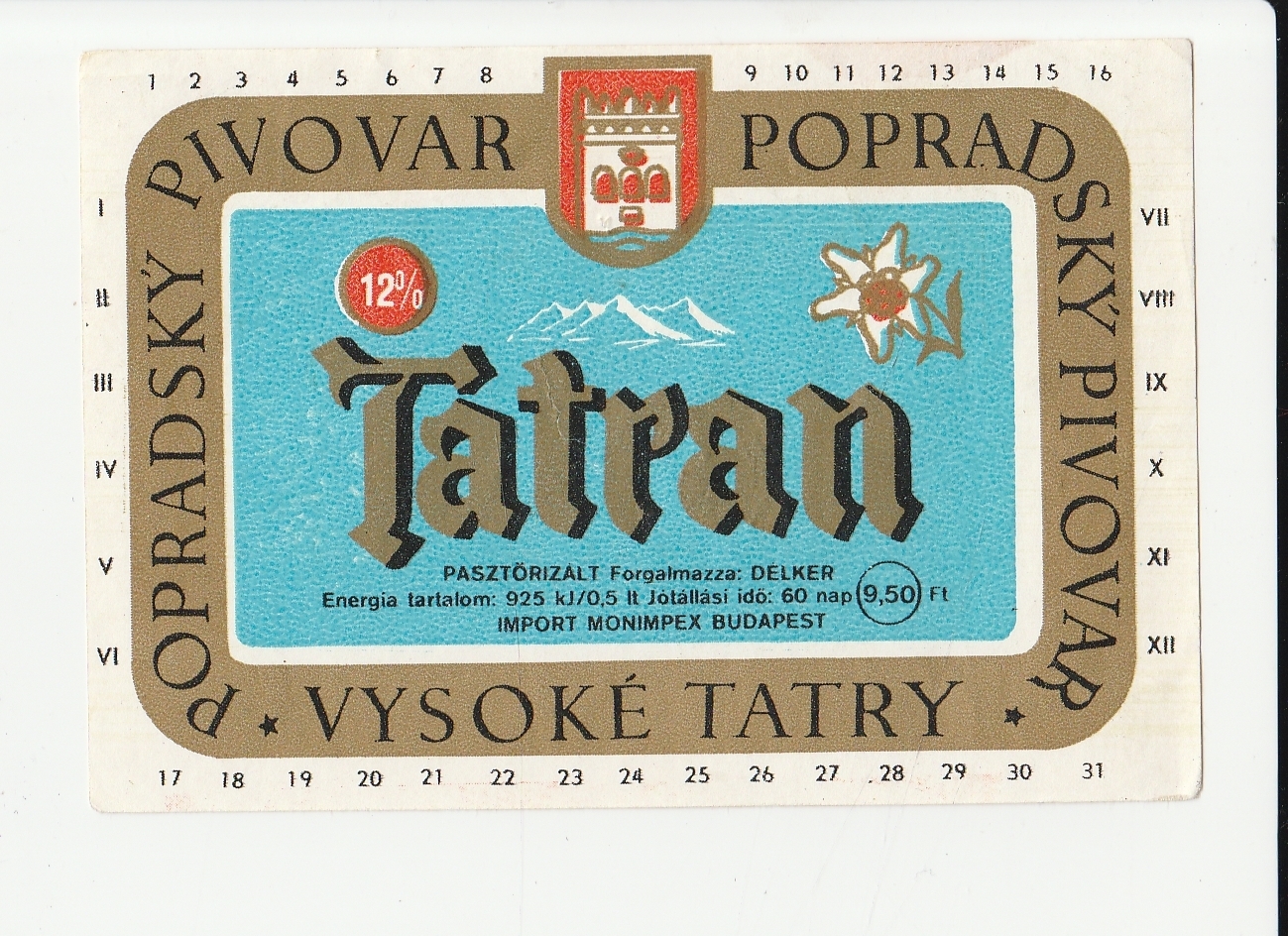 K15192 ЧССР Словакия Пивная этикетка Tatran Popradsky pivovar