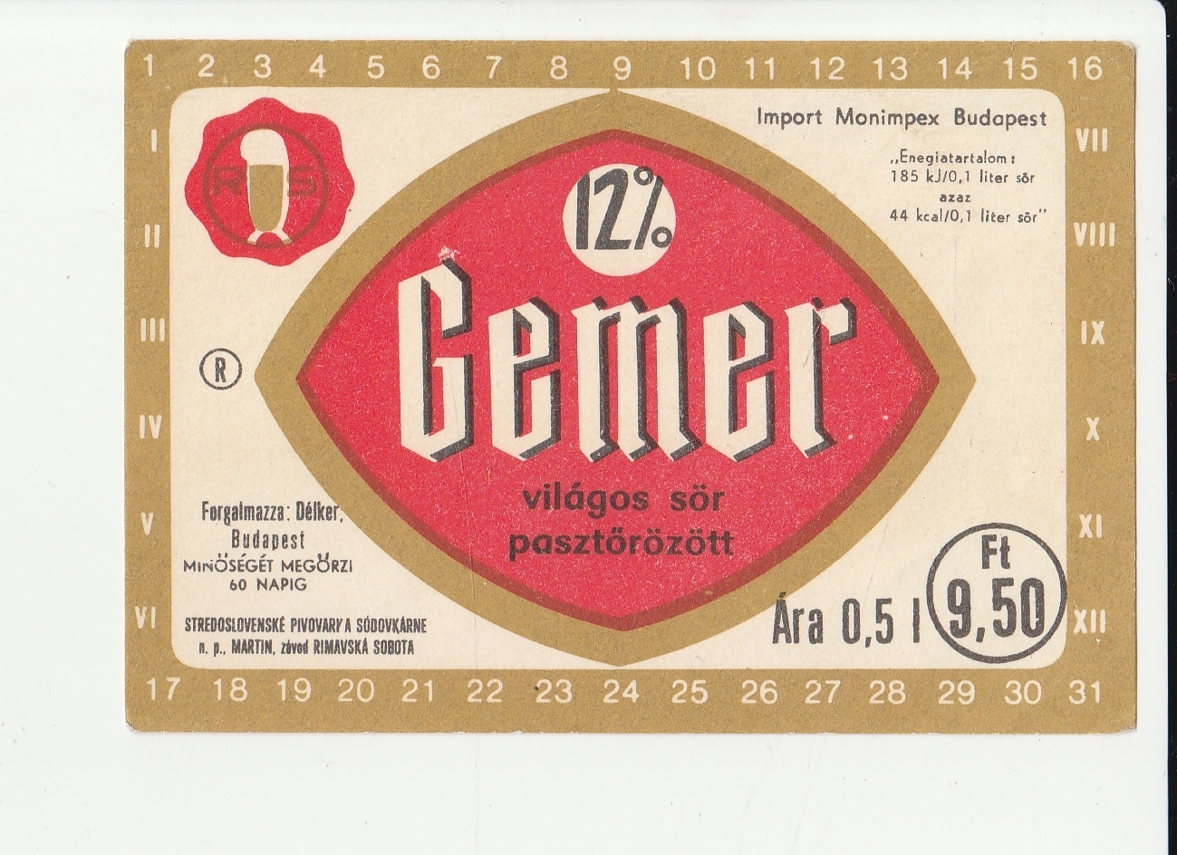 K15199 ЧССР Чехословакия Пивная этикетка Gemer
