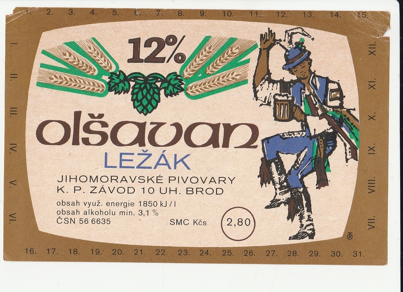 K15286 ЧССР Чехословакия Пивная этикетка OLSAVAN LEZAK