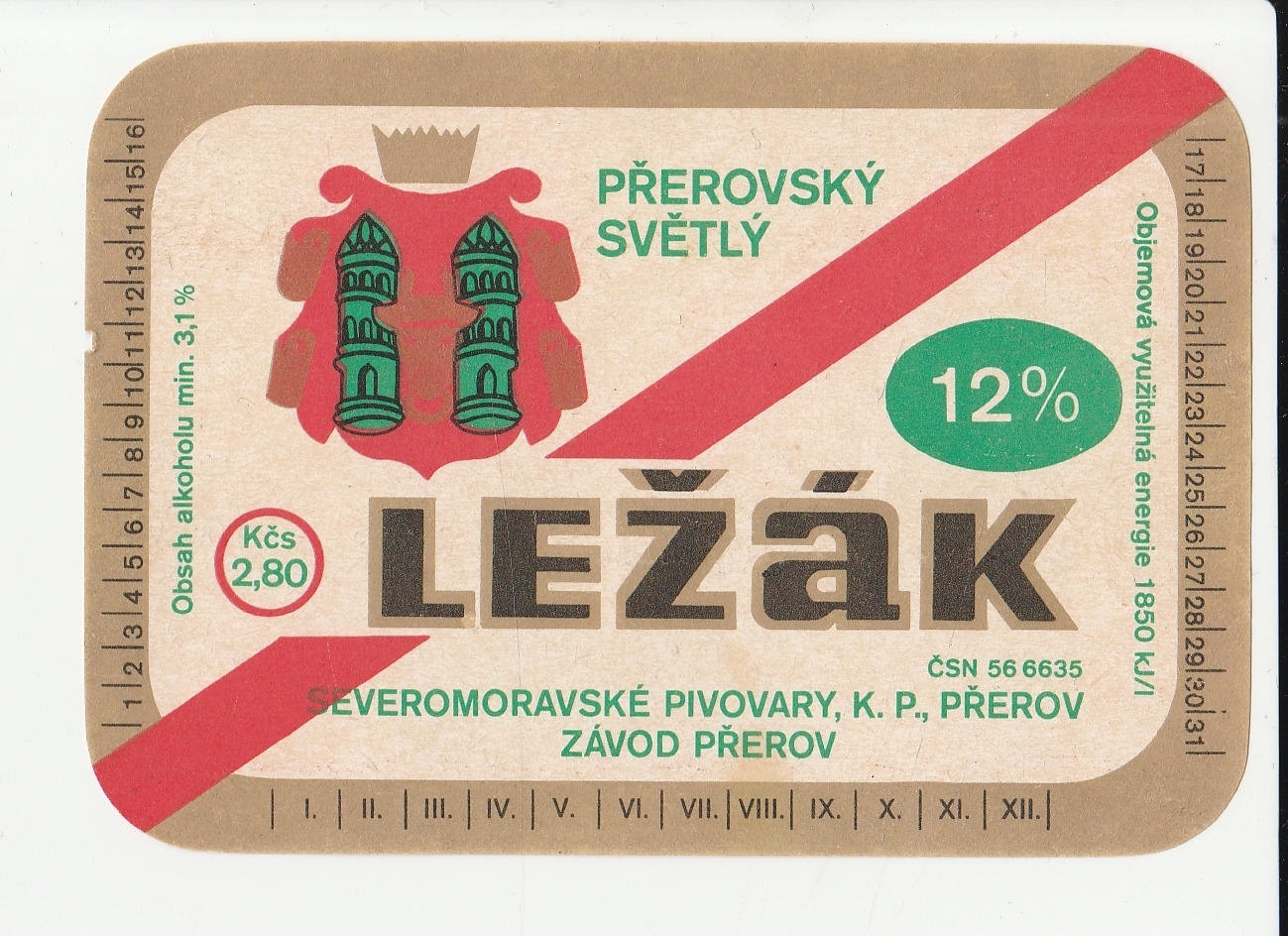 K15296 ЧССР Чехословакия Пивная этикетка PREROVSKY SVETLY LEZAK, 12%, Prerov