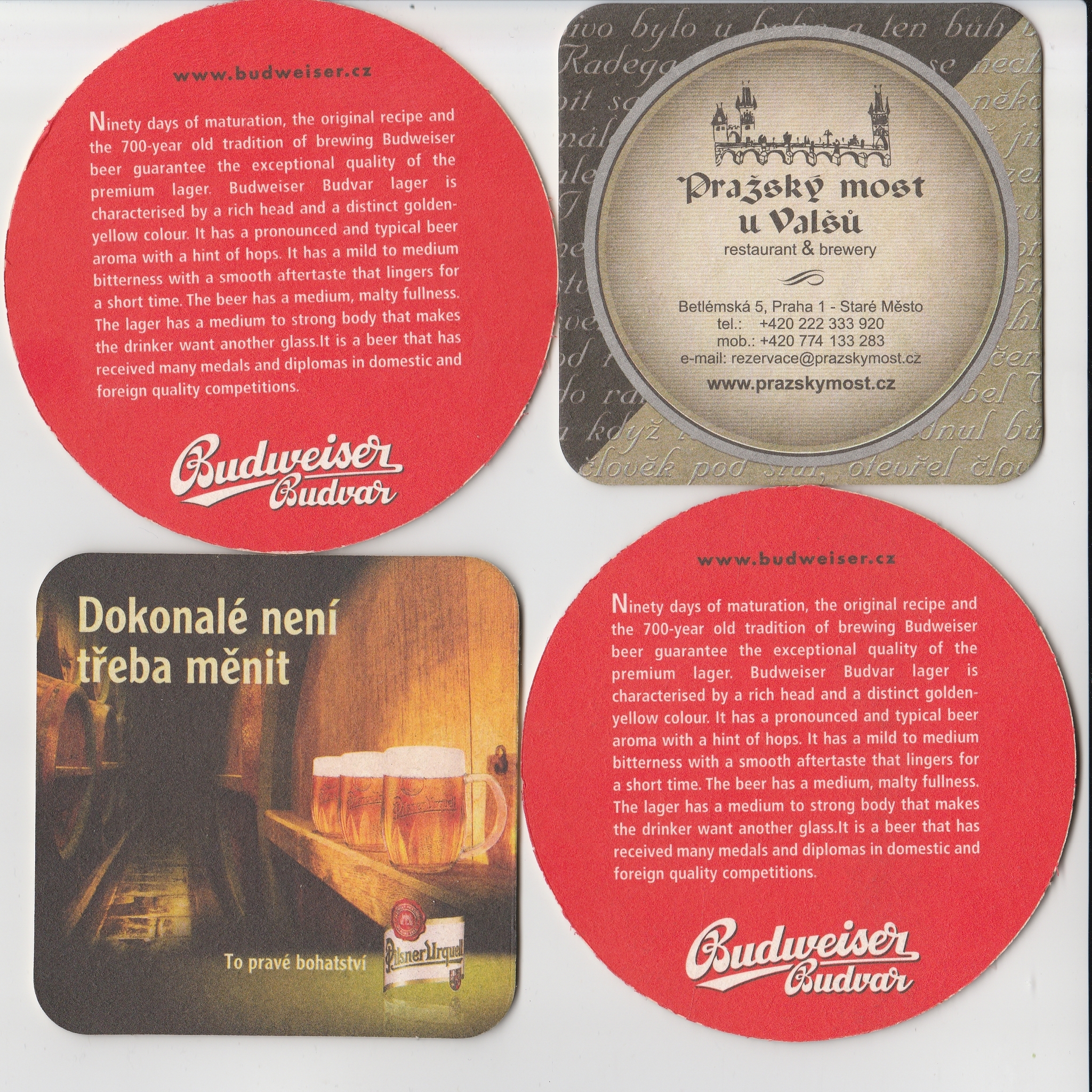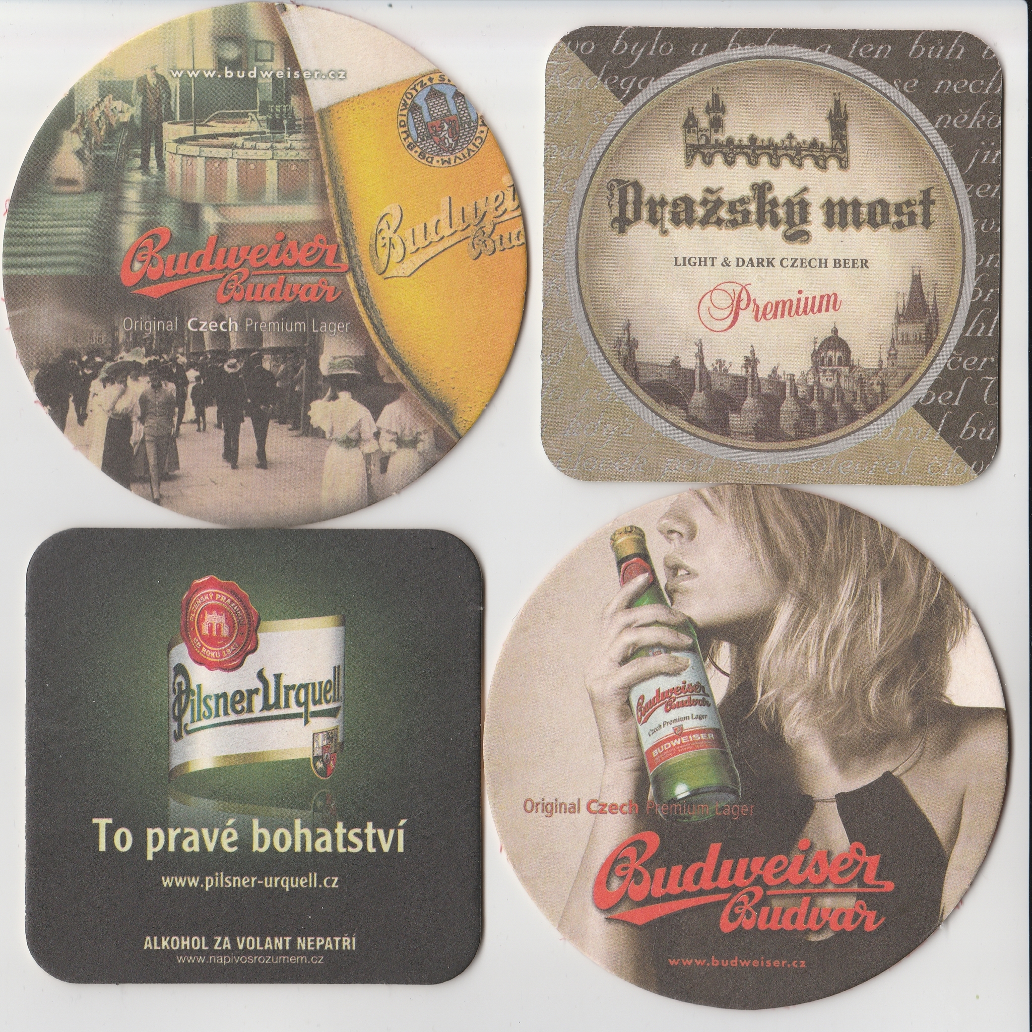 K15315 Чехия и др. Набор декелей пивных подставок 4 шт. одним лотом