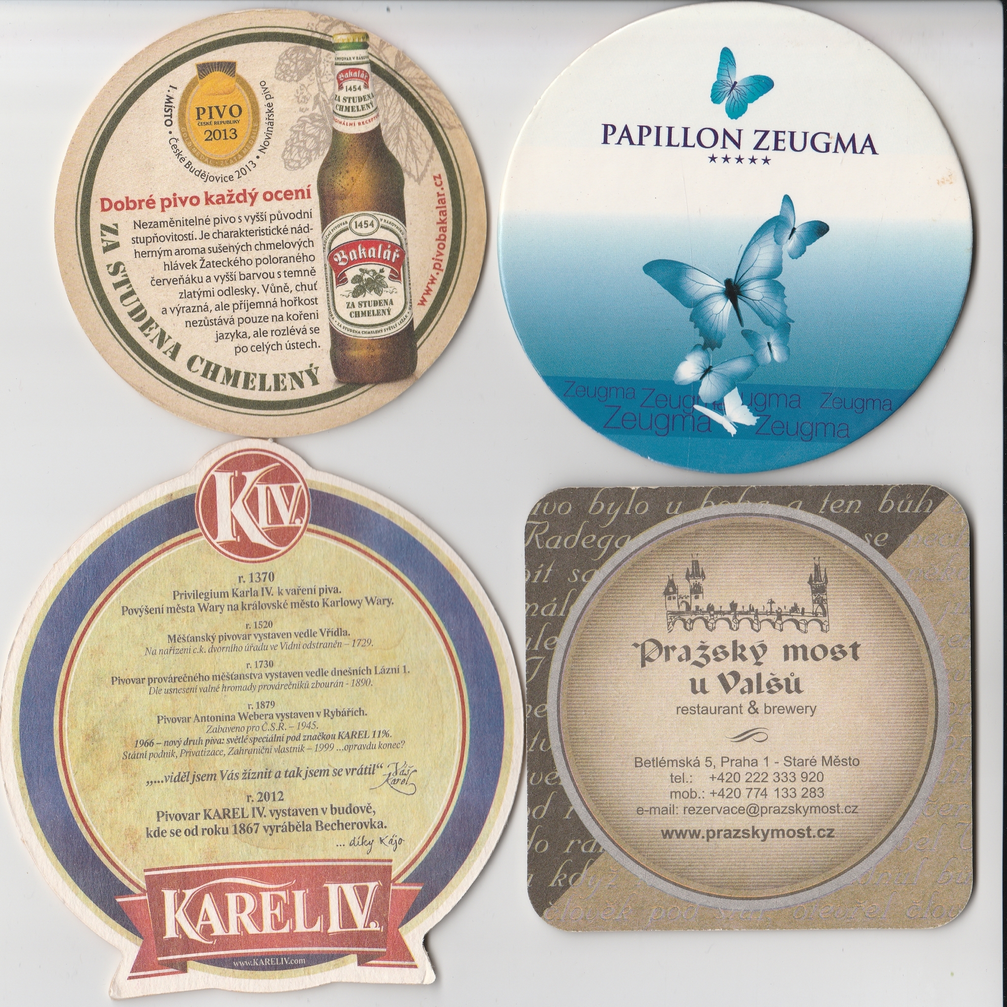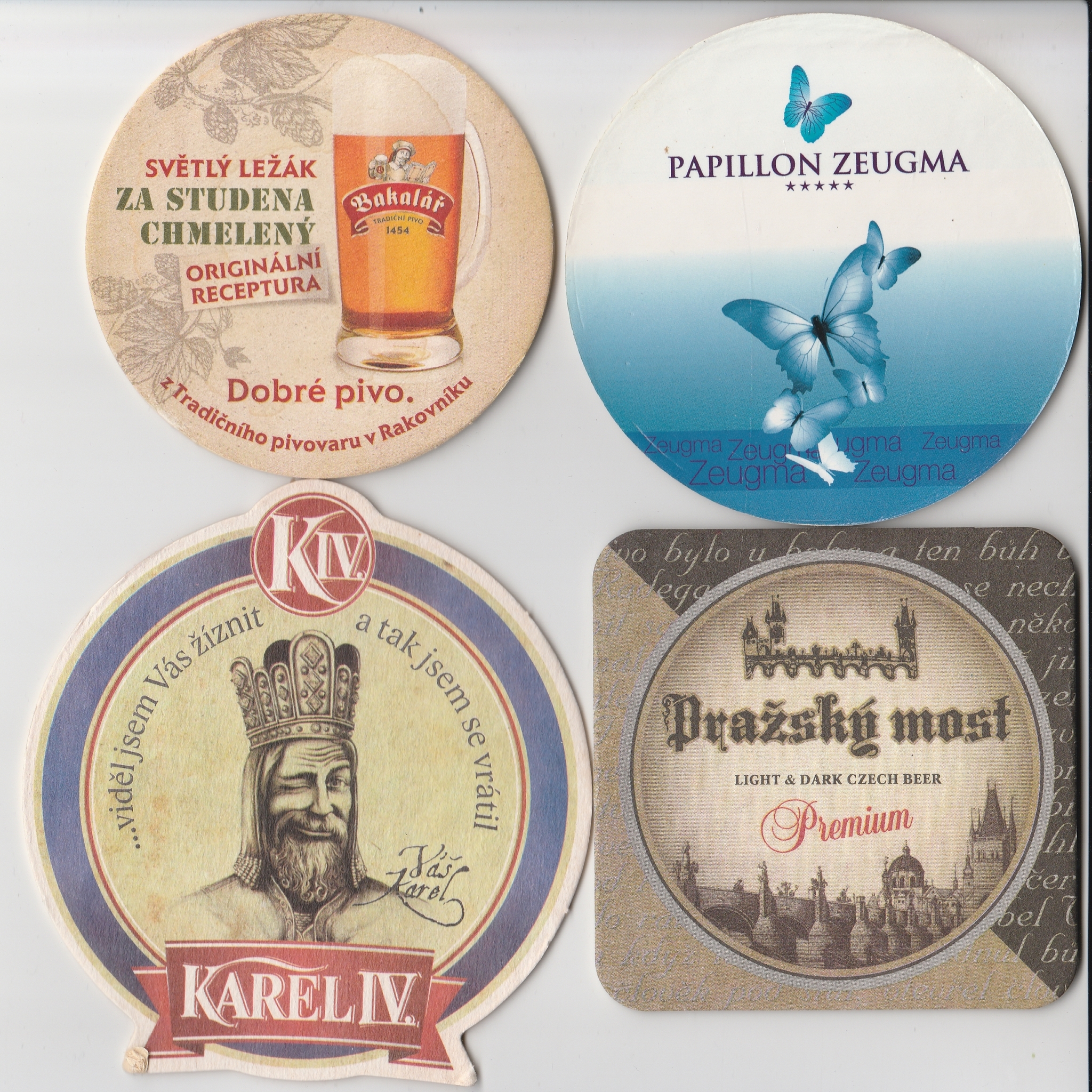 K15317 Чехия и др. Набор декелей пивных подставок 4 шт. одним лотом