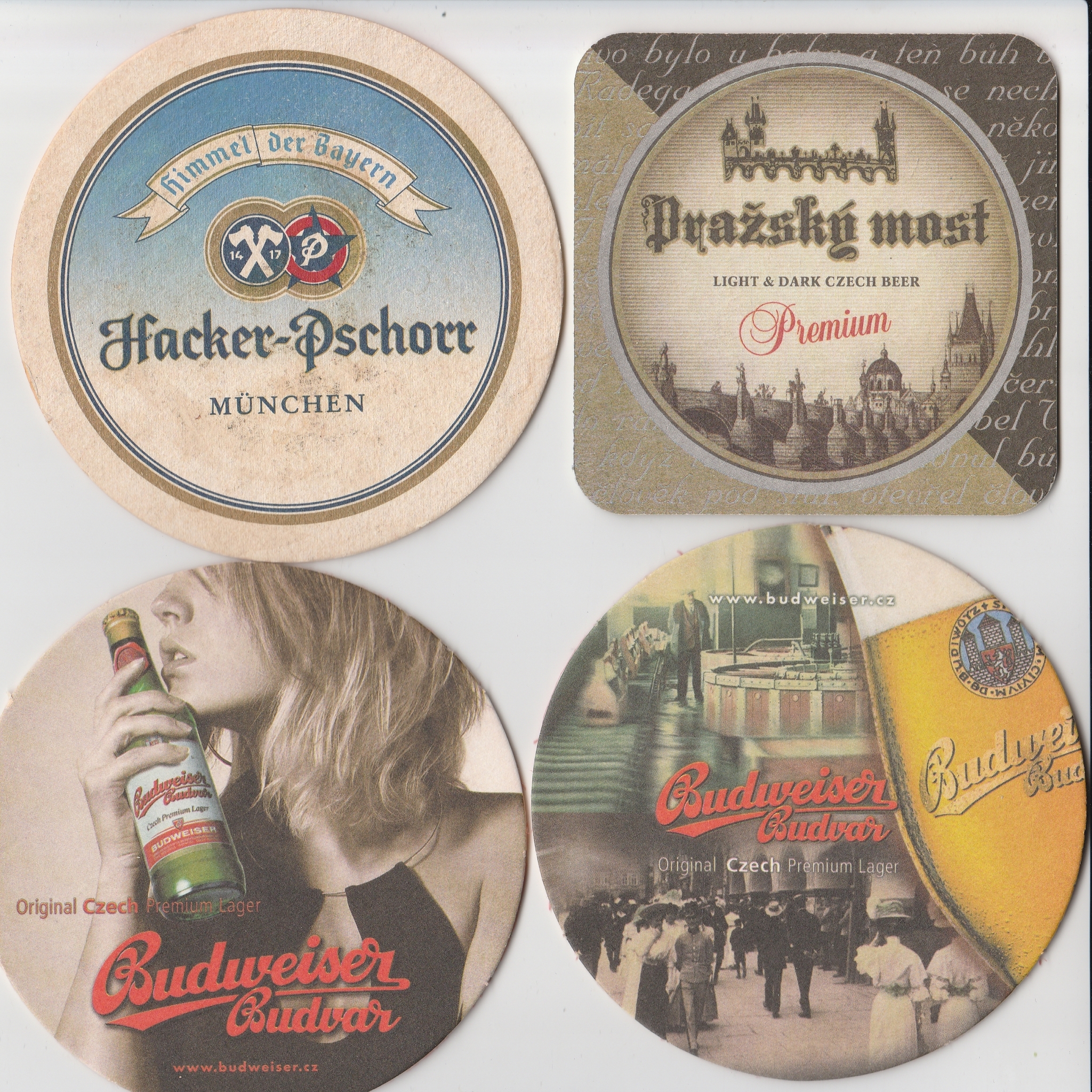 K15319 Чехия и др. Набор декелей пивных подставок 4 шт. одним лотом