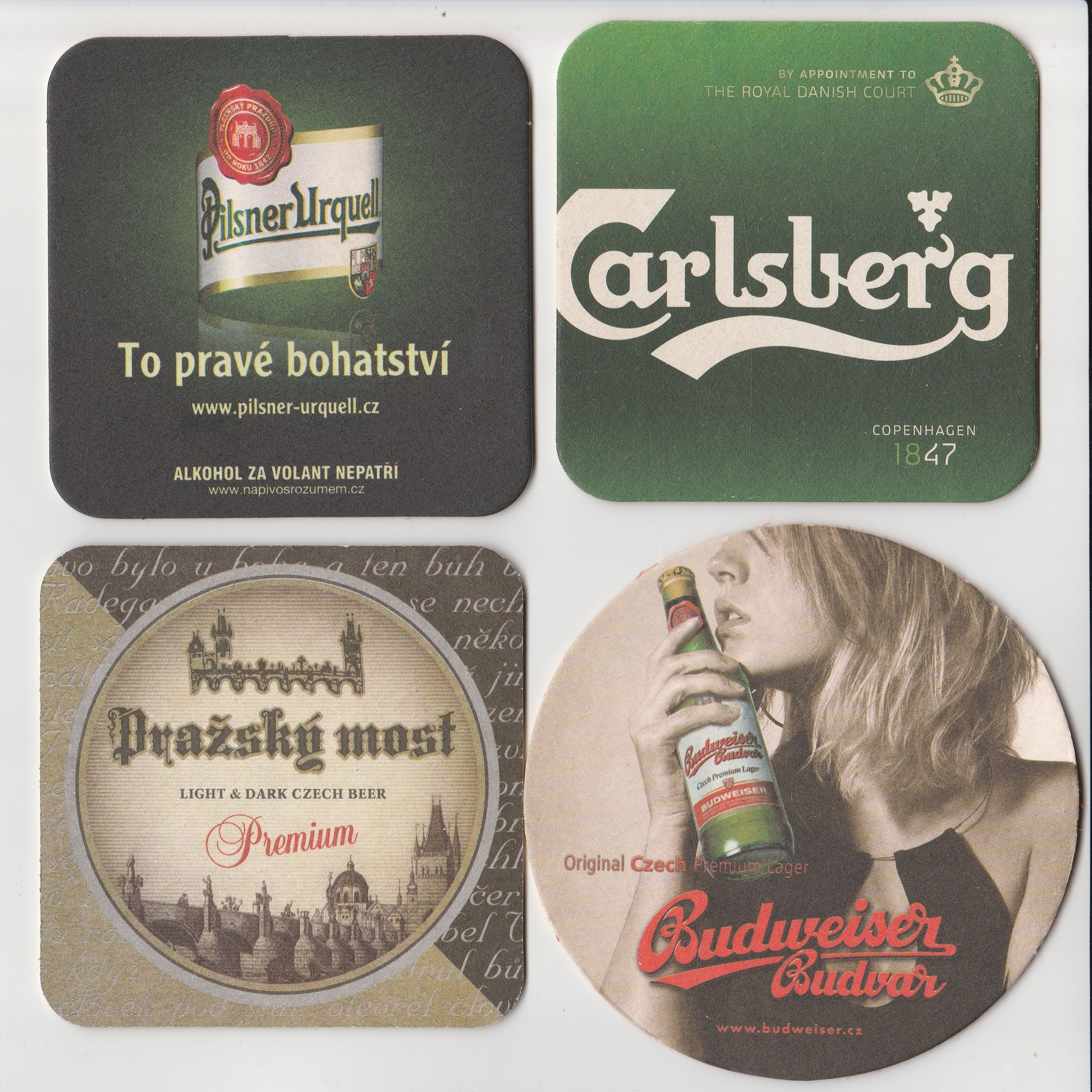 K15320 Чехия и др. Набор декелей пивных подставок 4 шт. одним лотом