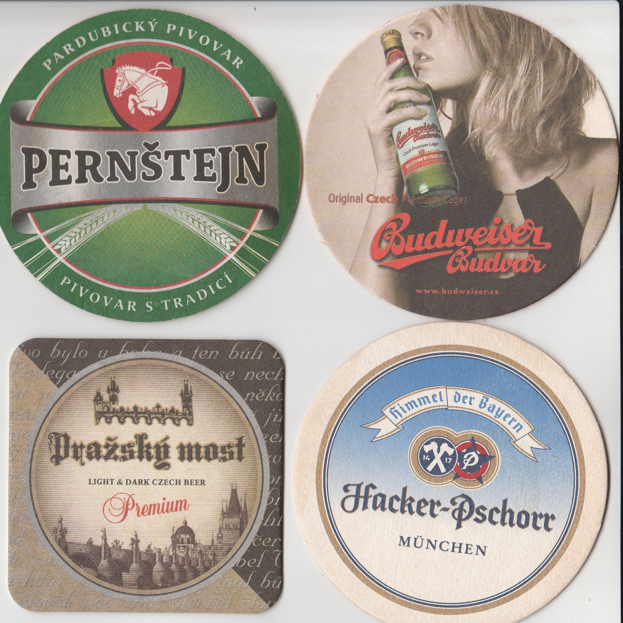 K15322 Чехия и др. Набор декелей пивных подставок 4 шт. одним лотом