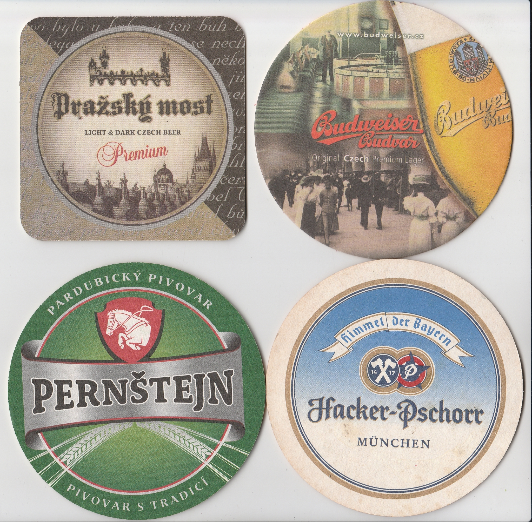 K15323 Чехия и др. Набор декелей пивных подставок 4 шт. одним лотом