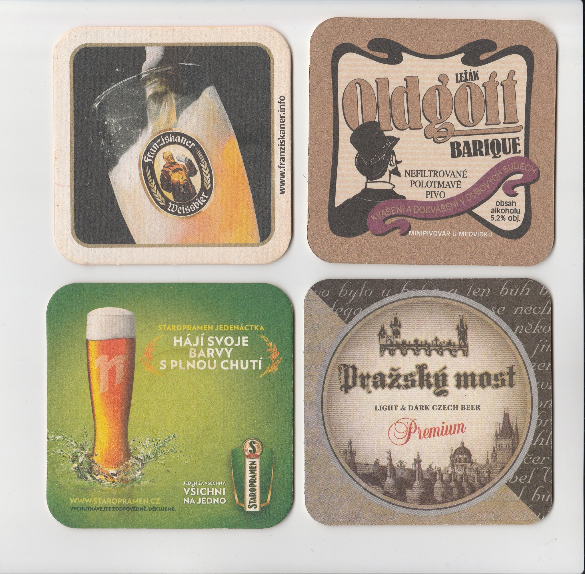 K15328 Чехия и др. Набор декелей пивных подставок 4 шт. одним лотом