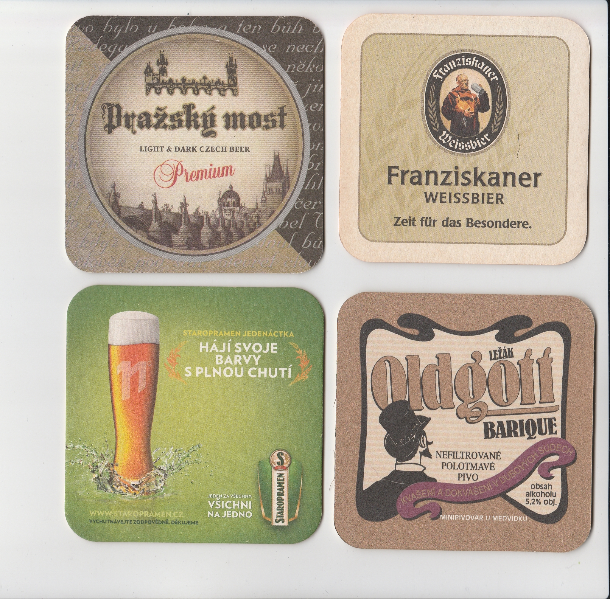 K15329 Чехия и др. Набор декелей пивных подставок 4 шт. одним лотом