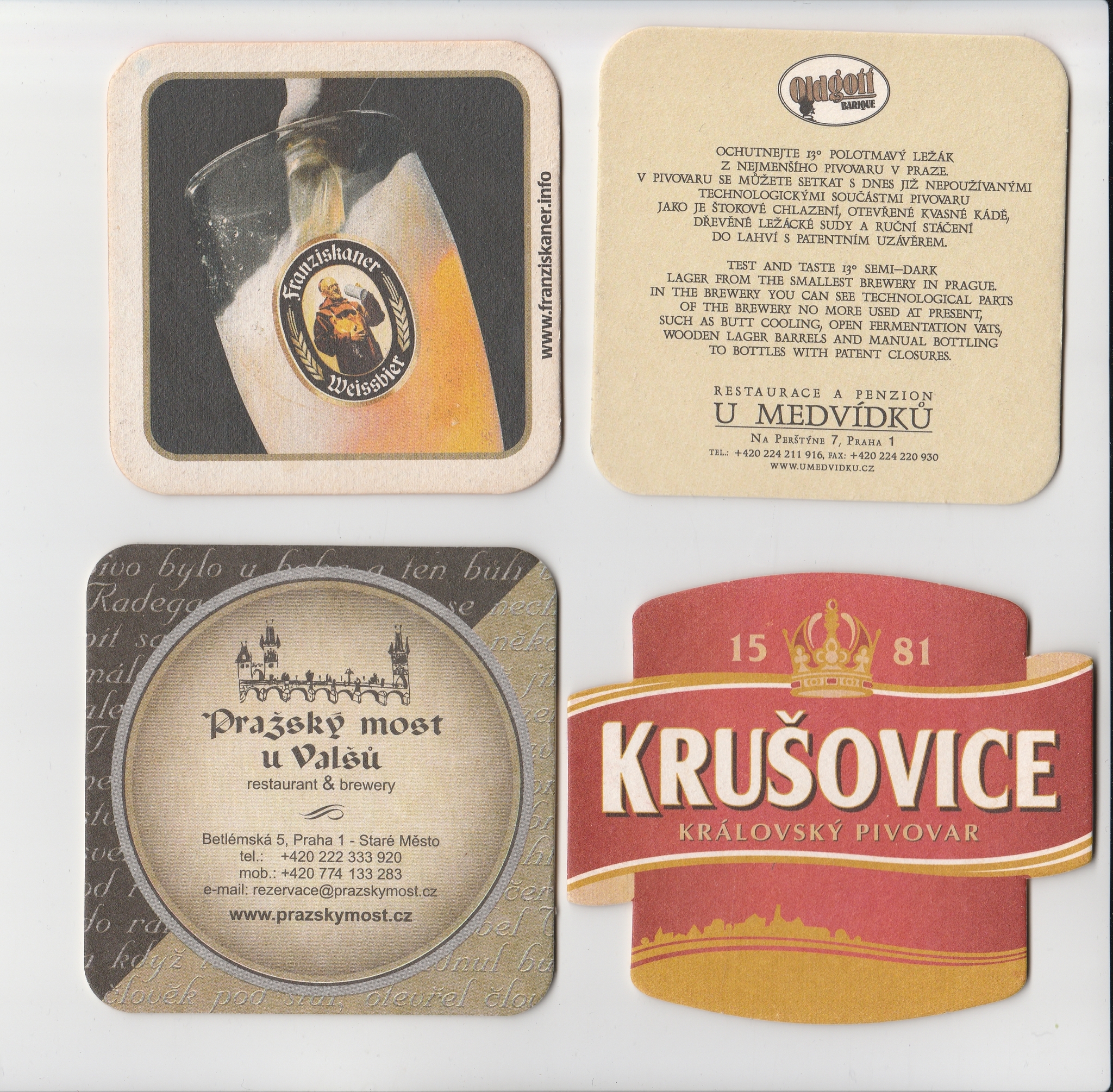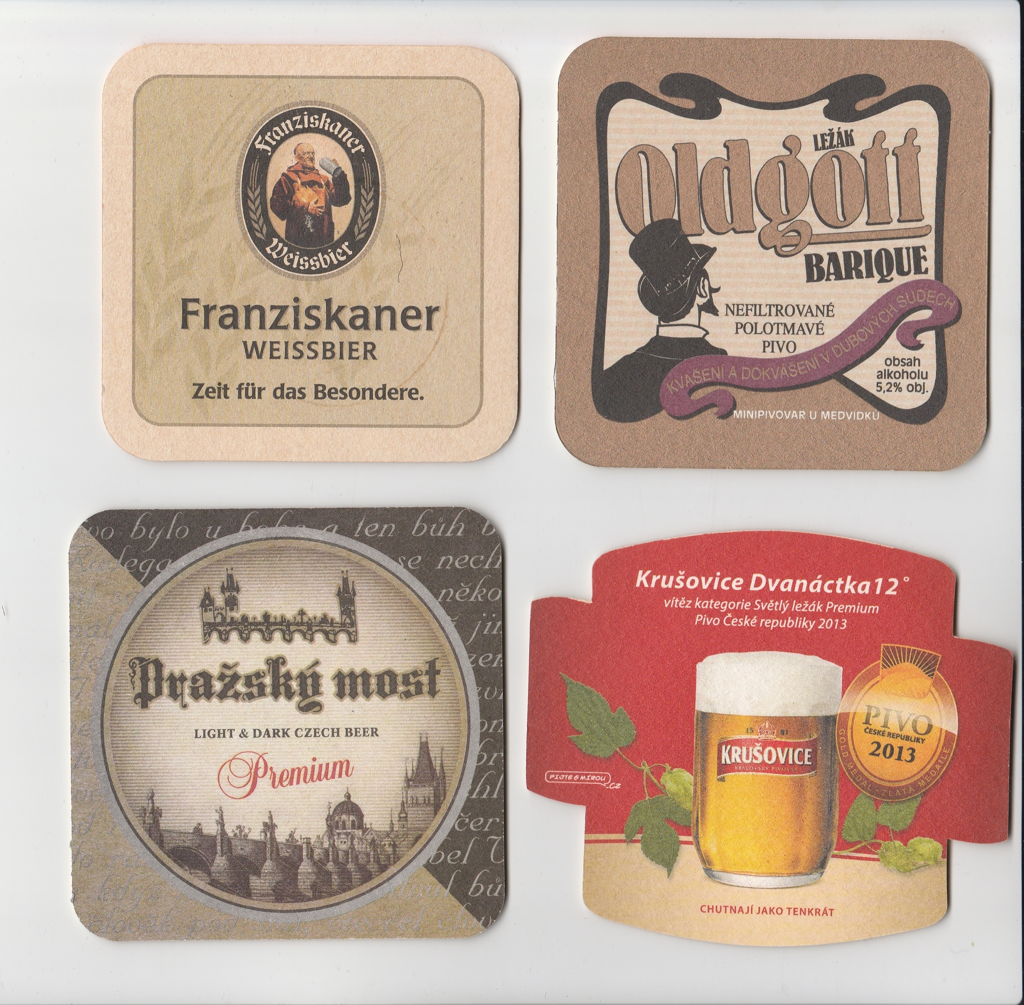 K15330 Чехия и др. Набор декелей пивных подставок 4 шт. одним лотом