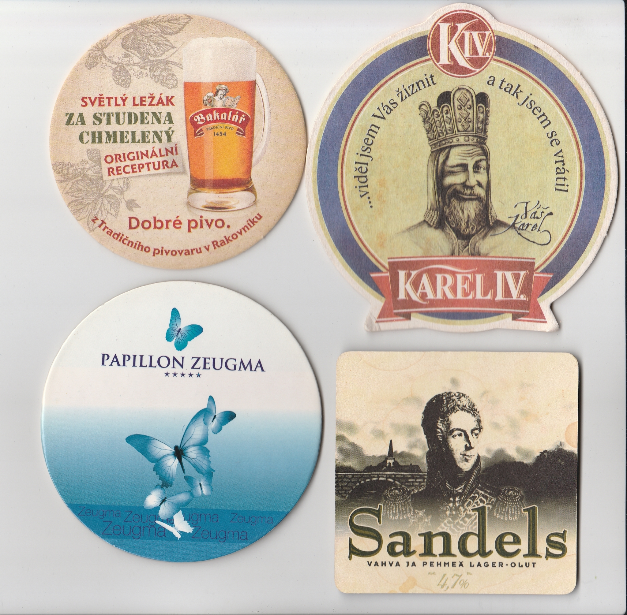 K15332 Чехия и др. Набор декелей пивных подставок 4 шт. одним лотом