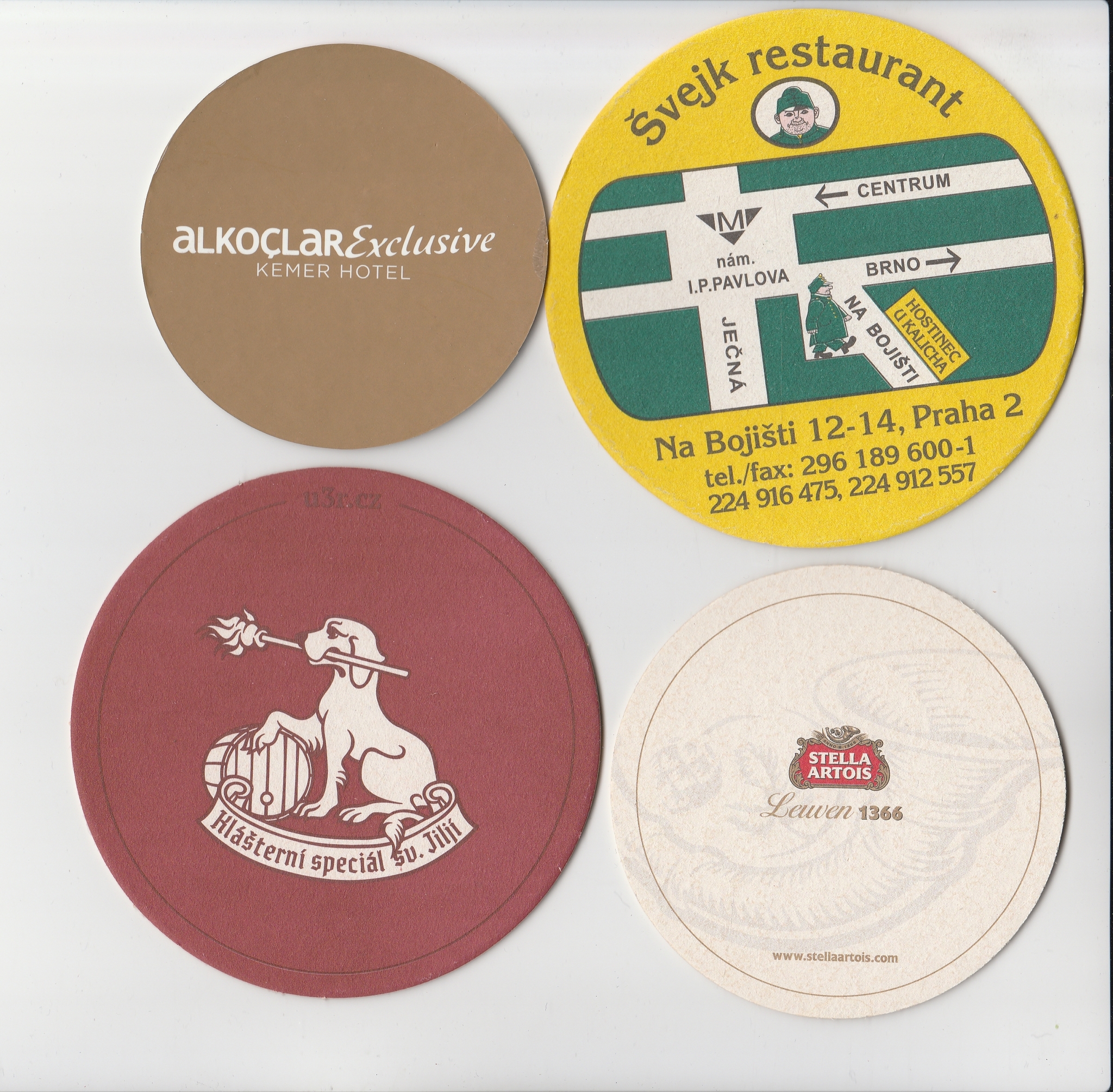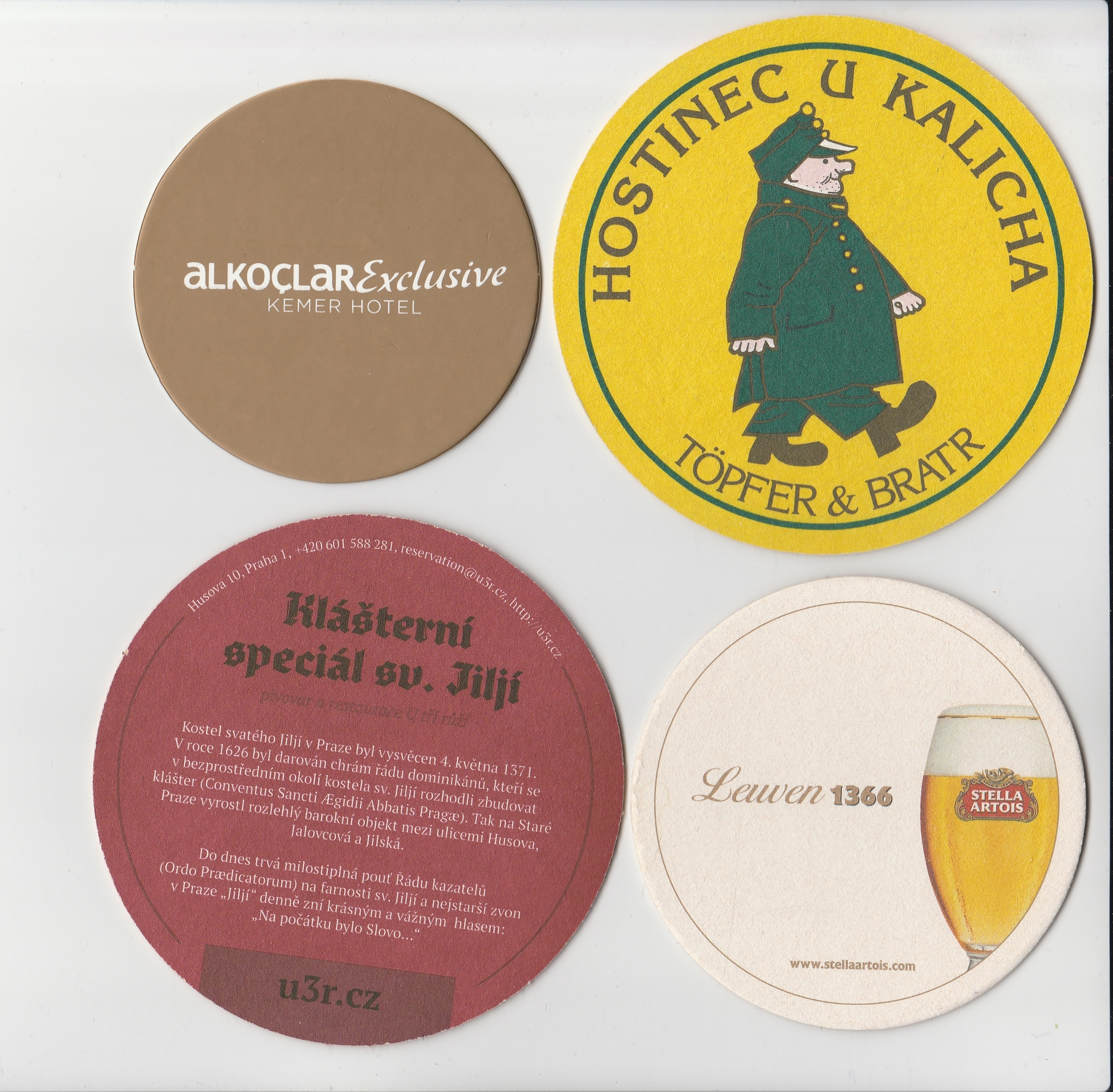 K15333 Чехия и др. Набор декелей пивных подставок 4 шт. одним лотом