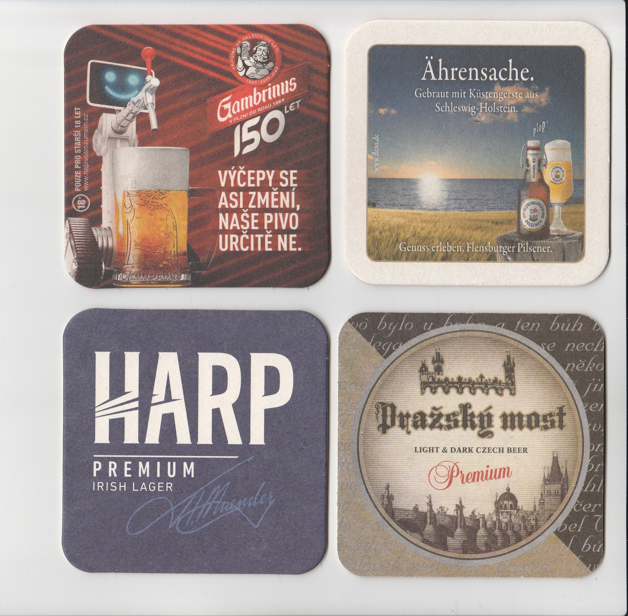 K15338 Чехия и др. Набор декелей пивных подставок 4 шт. одним лотом