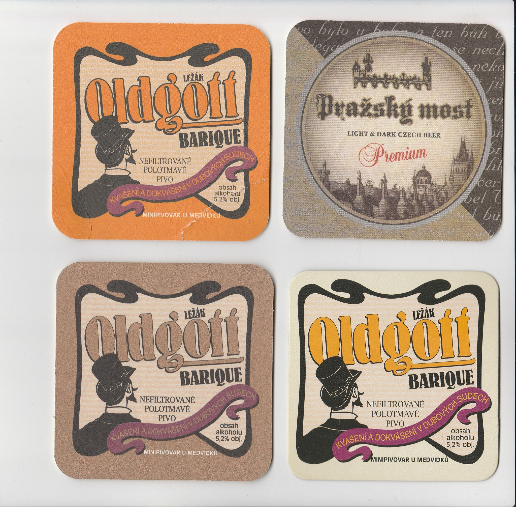 K15342 Чехия и др. Набор декелей пивных подставок 4 шт. одним лотом