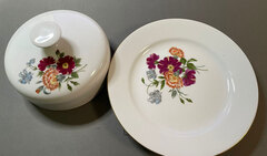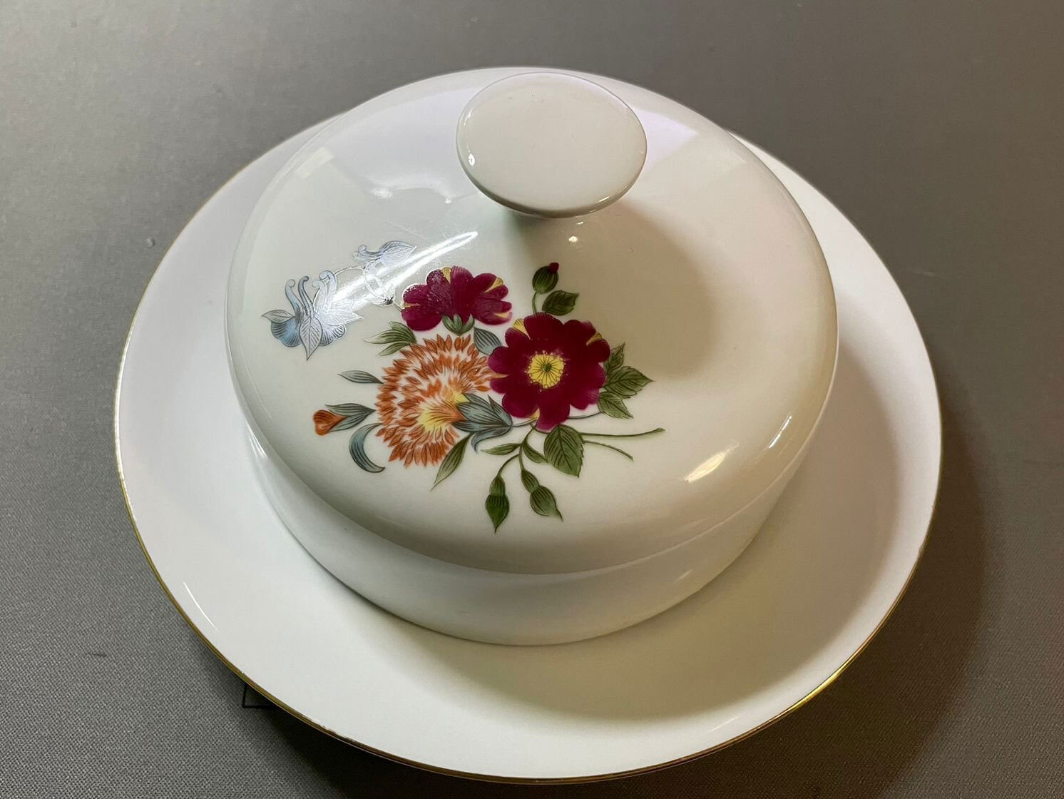 K15349 Масленка Полевые цветы Германия ГДР KAHLA, Фарфор, отводка золотом, в идеале, D-19, H-10 см