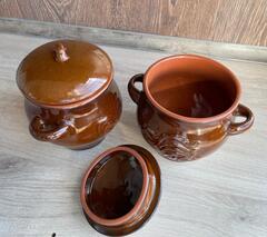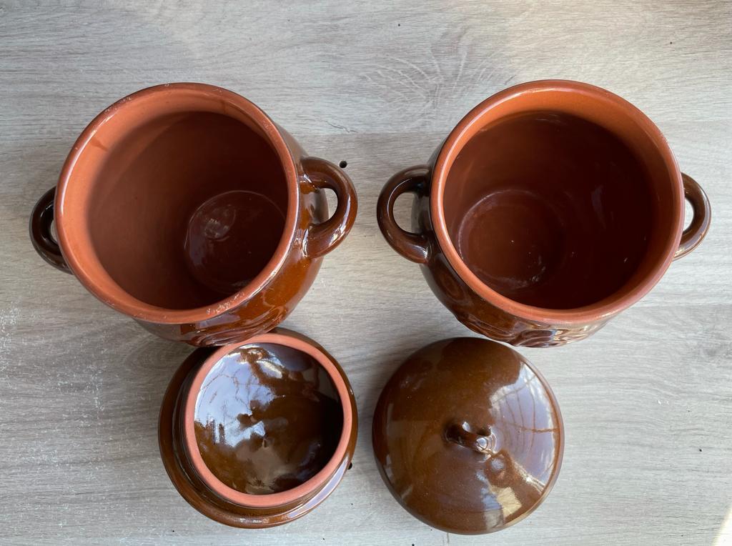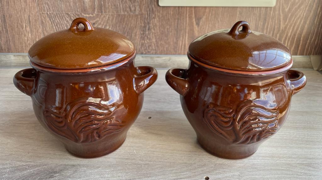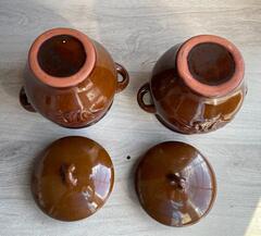 K15390 СССР ПАРА горшков с крышкой для запекания, керамика, H-16/D-15 см., новые в идеале