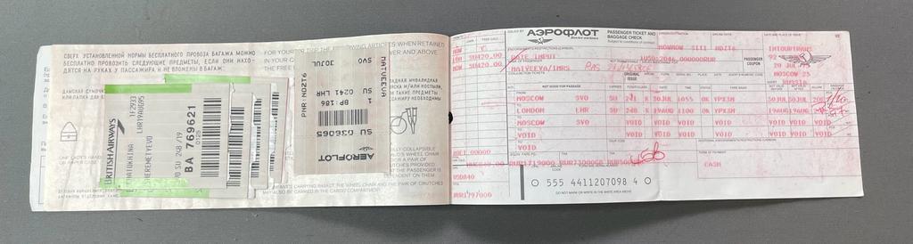 K15608 Билет книжка Аэрофлот 1995 г. Москва-Лондон с багажными квитанциями British airways