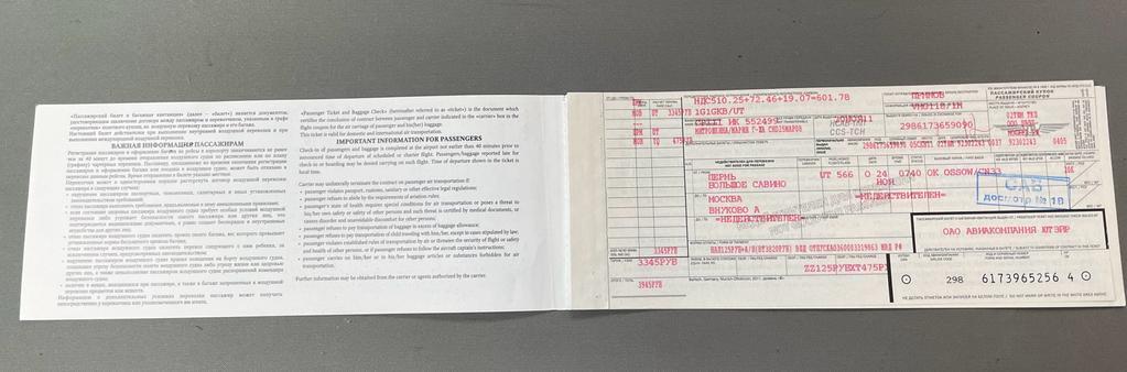 K15615 Билет книжка и багажная квитанция ЮтЭйр 2011 г. Пермь-Москва
