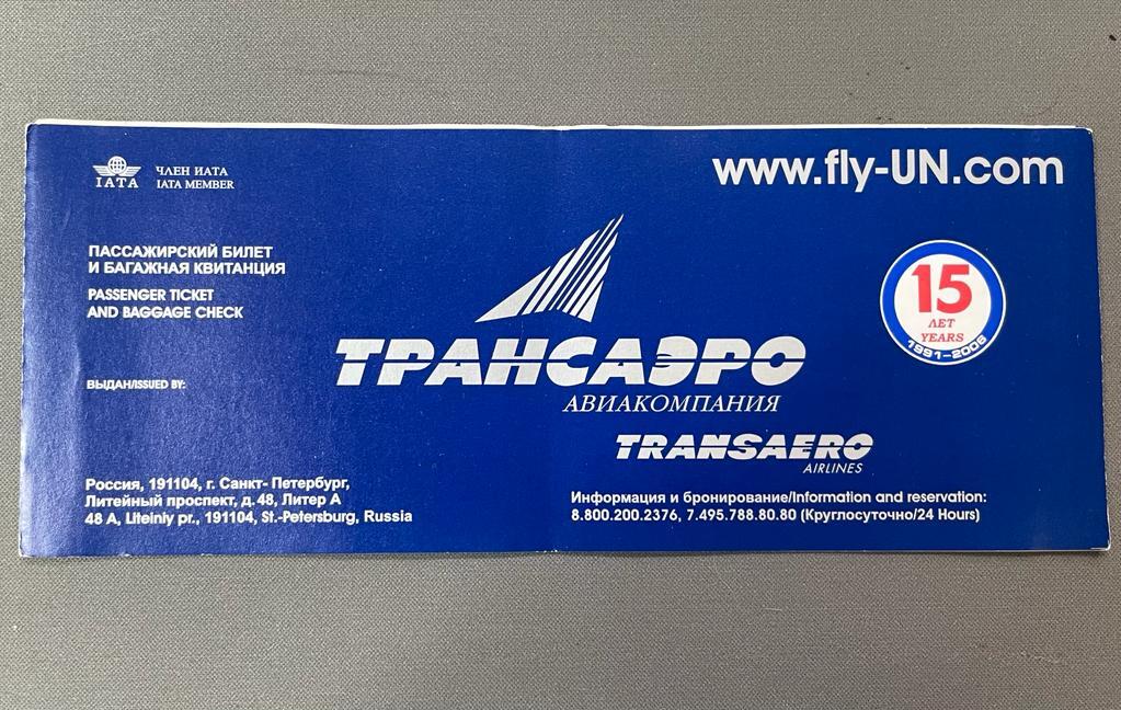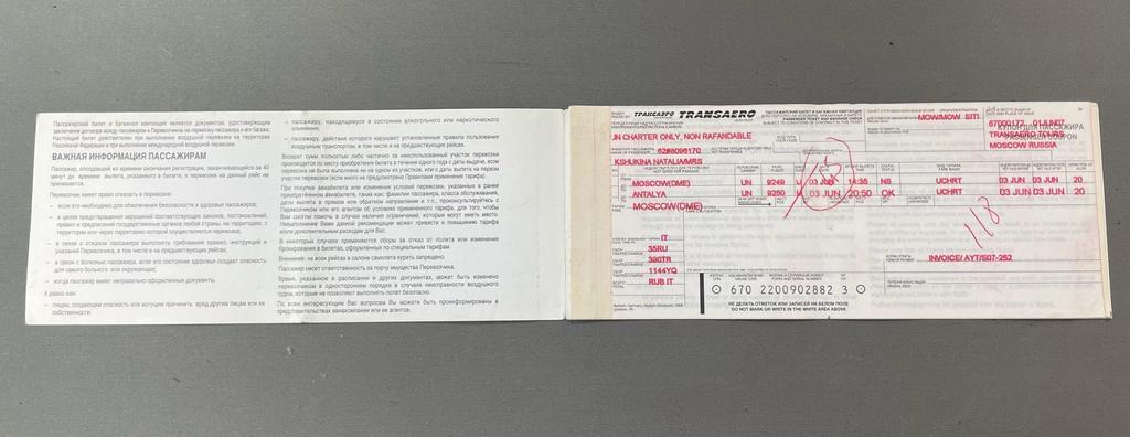 K15618 Билет книжка и багажная квитанция Трансаэро 2007 Москва-Анталия