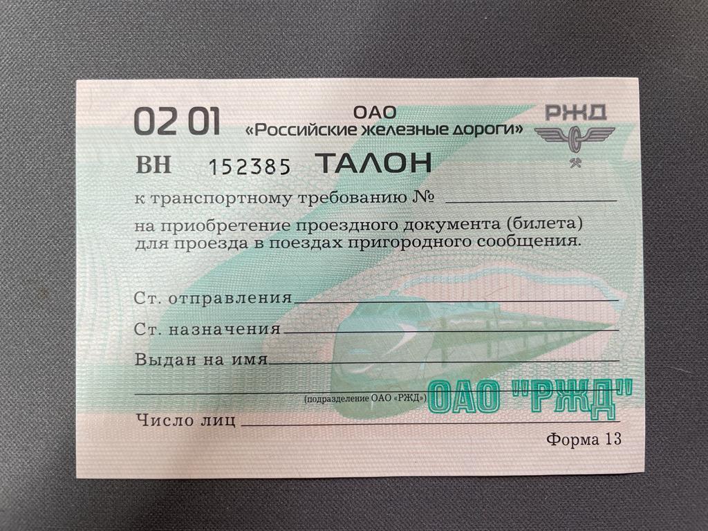 K15630 ОАО "РЖД" Талон на бесплатный (право приобретения) железнодорожного билета, в идеале