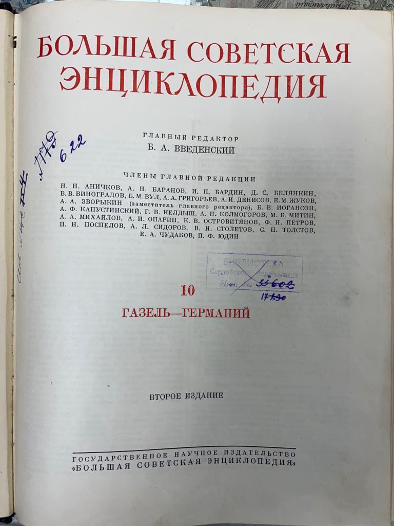 K15683 Большая советская энциклопедия Второе издание 1952 г. Том 10 ГАЗЕЛЬ-ГЕРМАНИЙ
