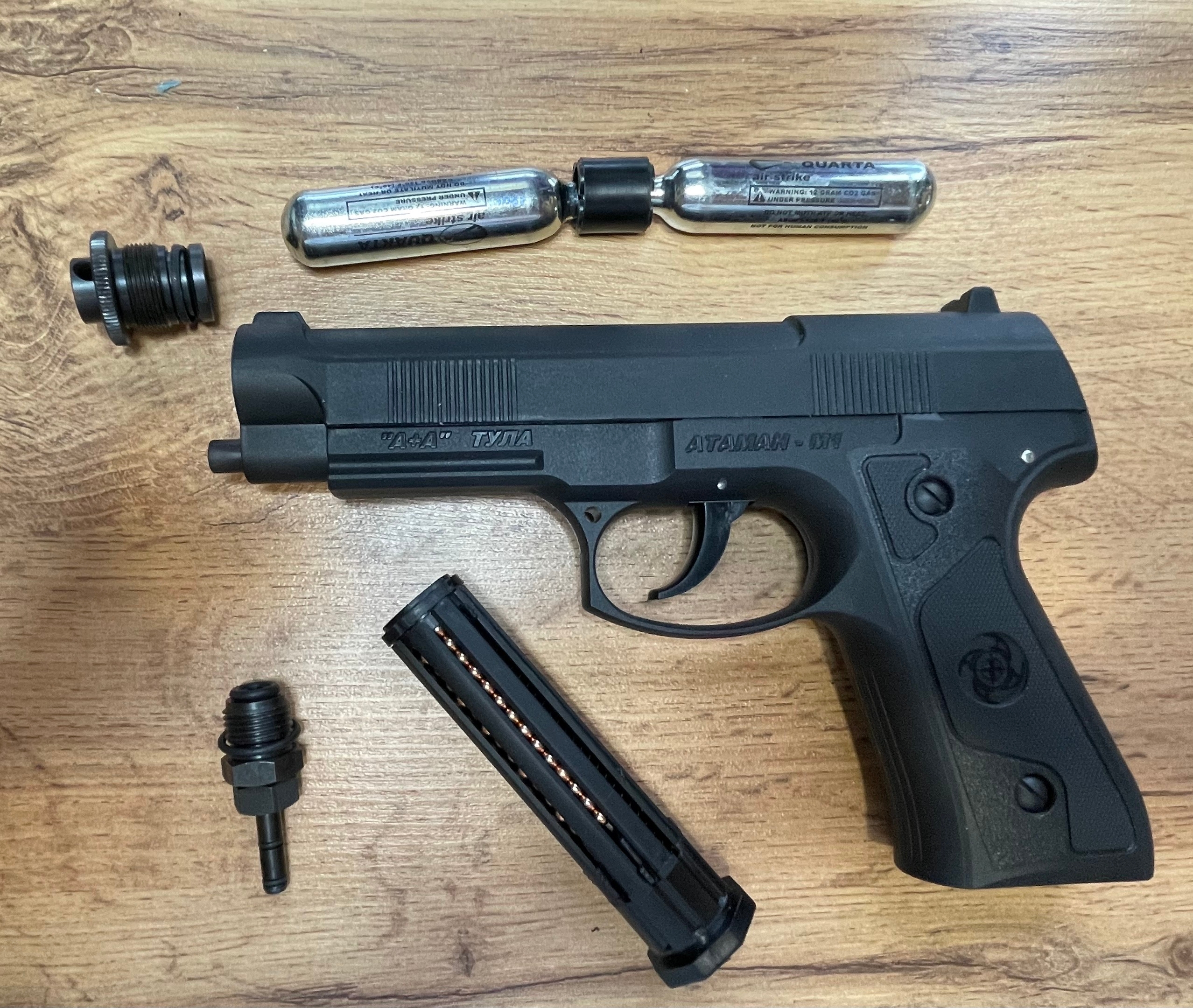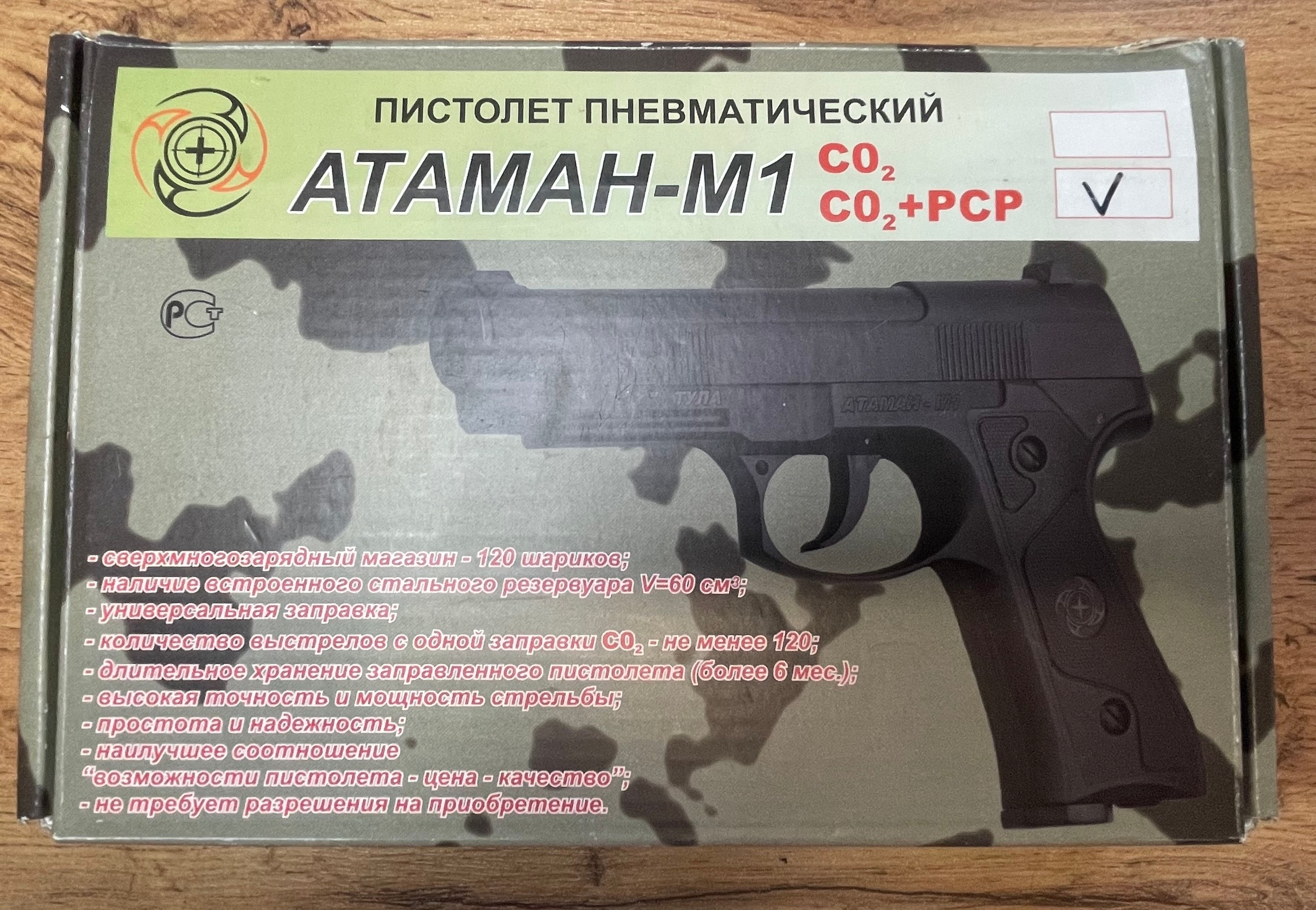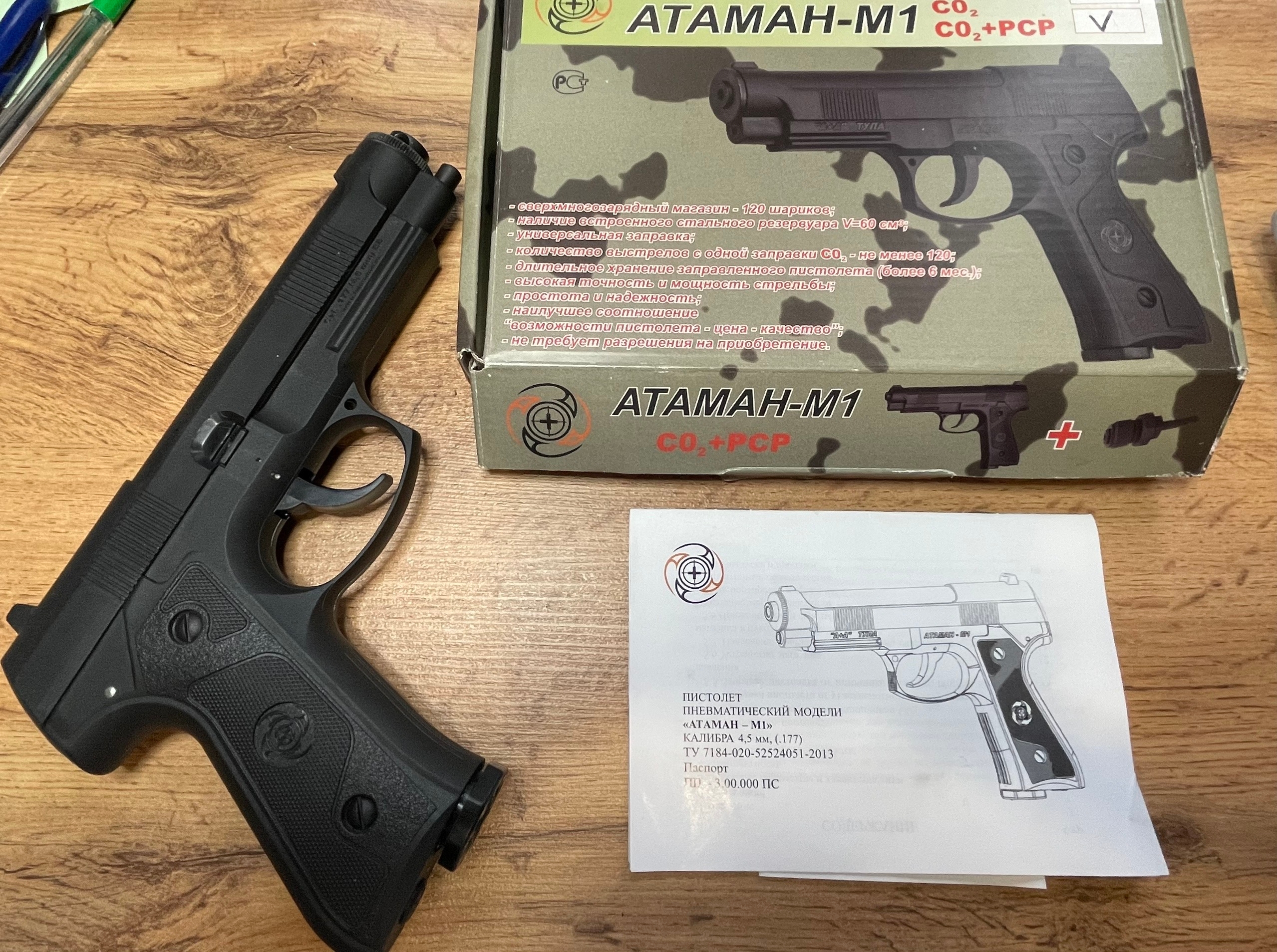 K16883 Пневматический пистолет Атаман-М1 (PCP + CO2) калибр 4,5 мм., пластик (копия Beretta M92)