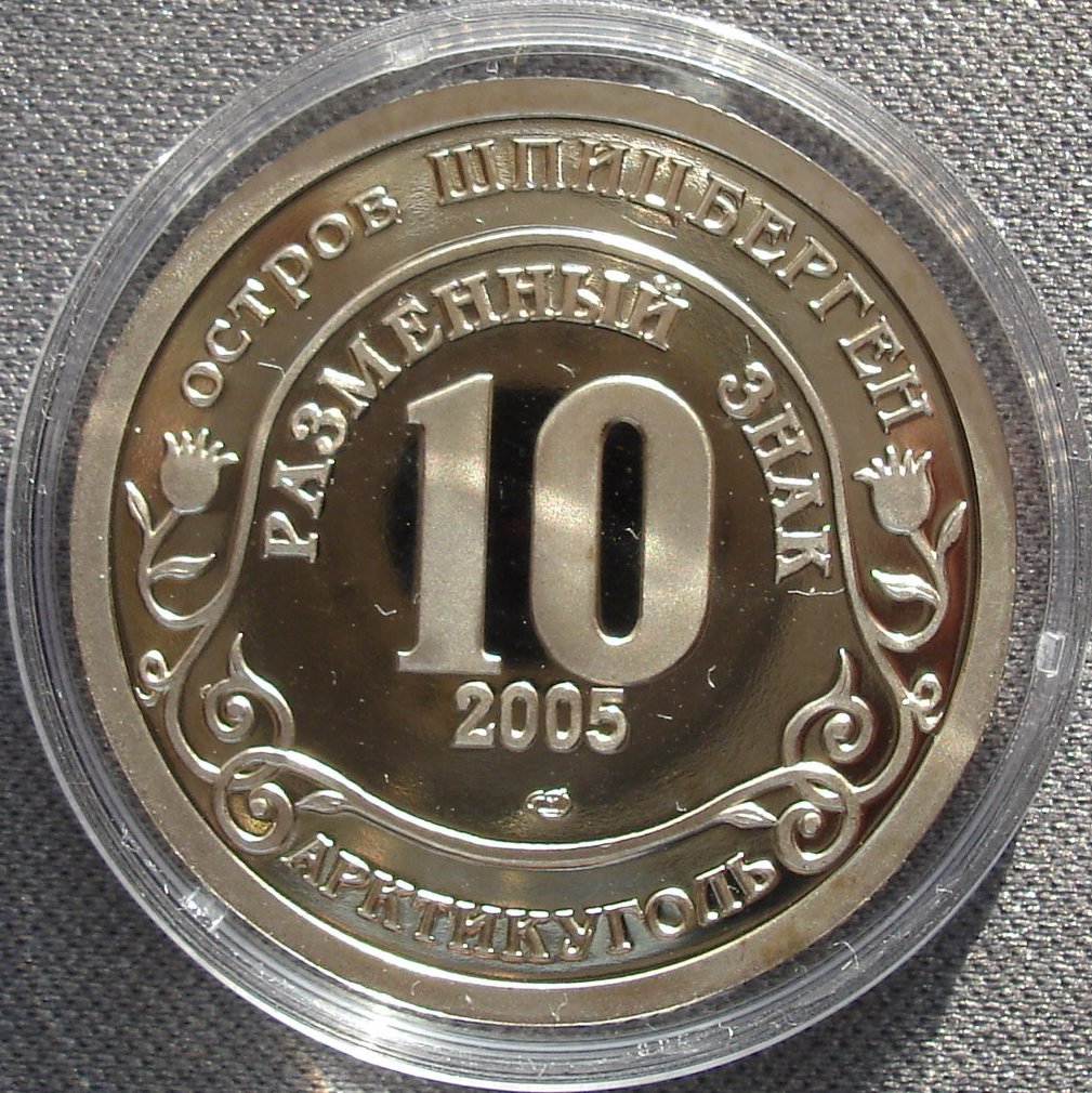 K10097 2005 Шпицберген Арктикуголь 10 рублей разменный знак Иоанн Павел II Спмд