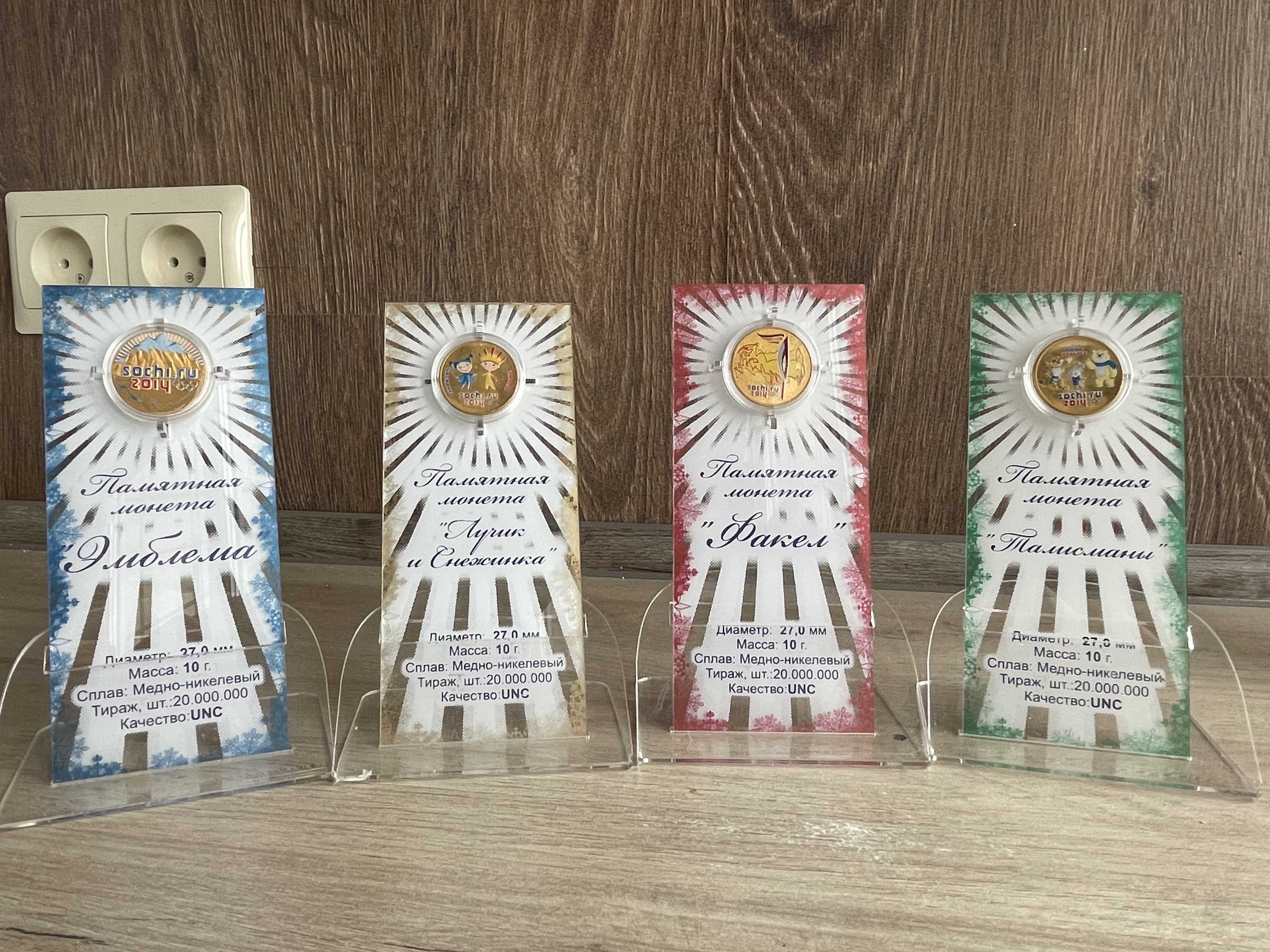 Набор из 4-х монет Сочи-2014 в выставочно презентацонном исполнении, капсулы, позолота, цветная печать, экслюзив SALE