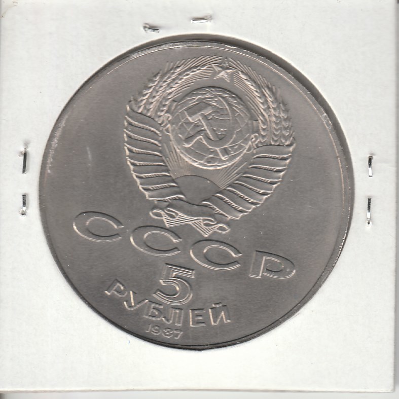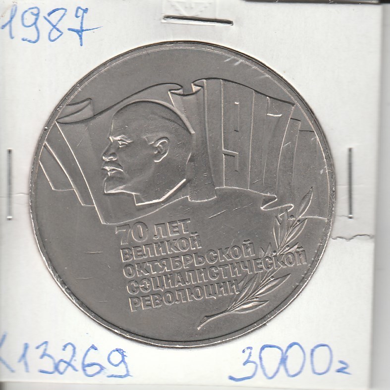 K13269 1987 СССР 5 рублей 70 лет Октябрьской революции шайба, холдер