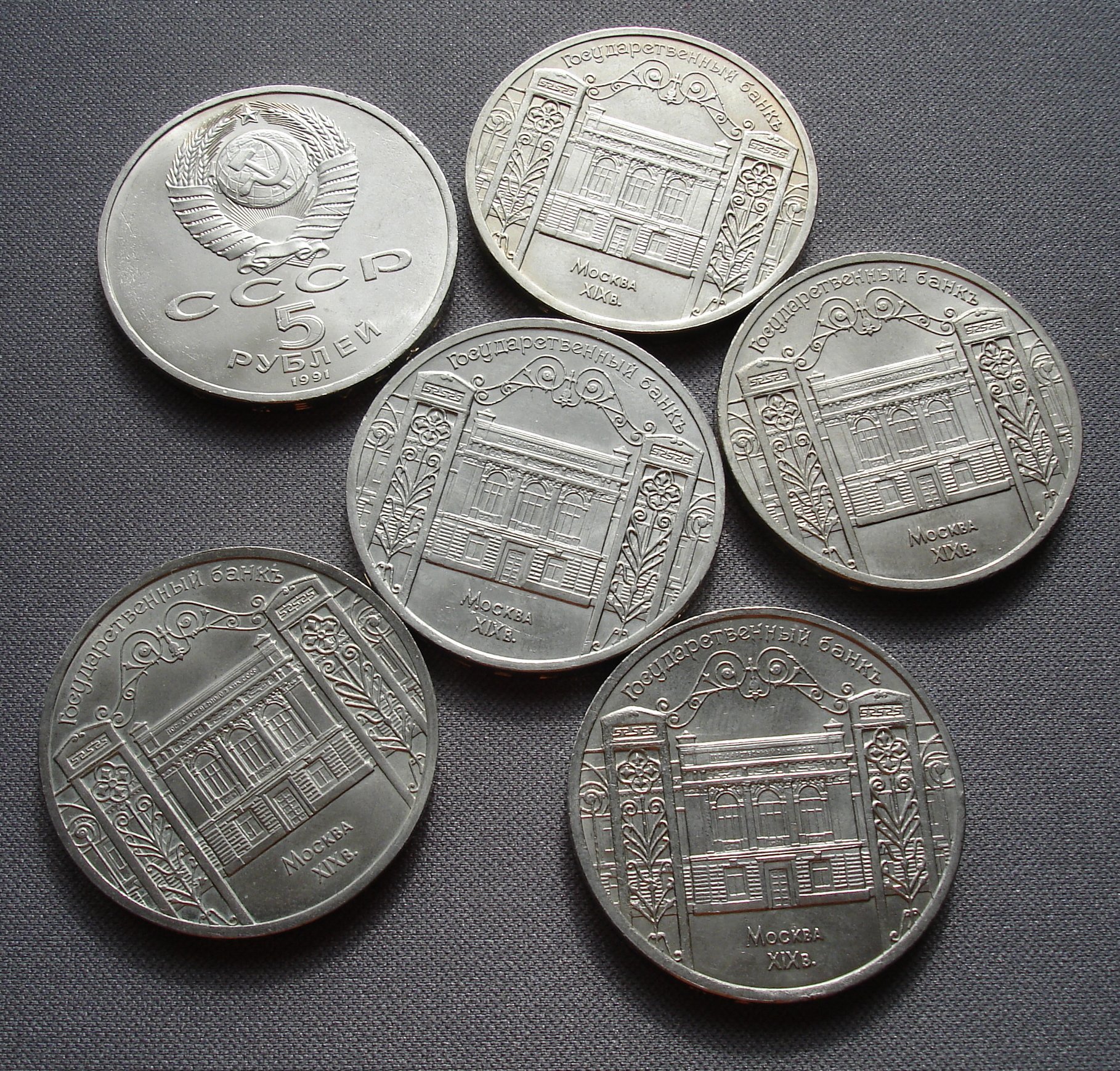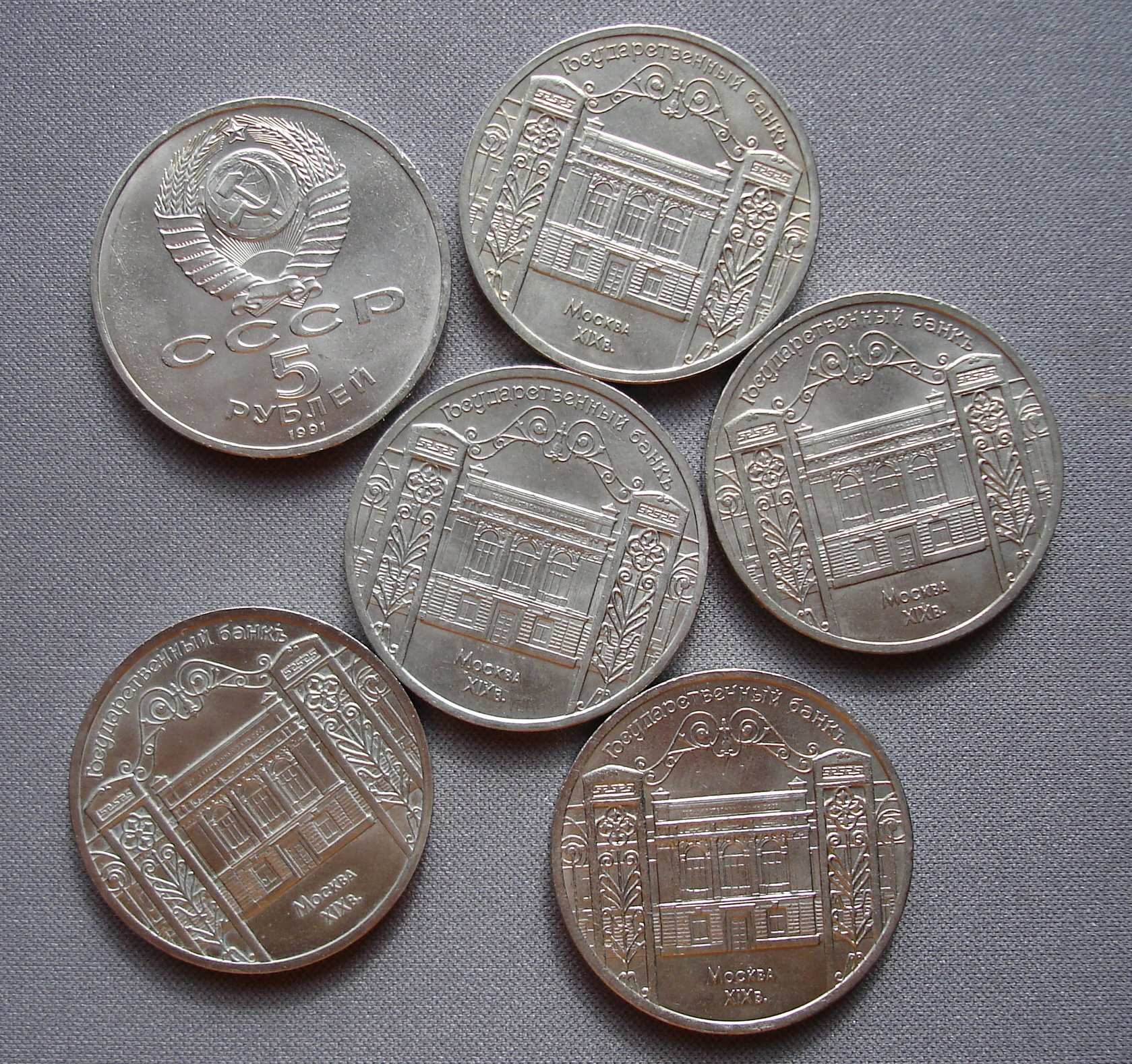K8423 1991 СССР 5 рублей Государственный банк (Госбанк), мультилот отличные