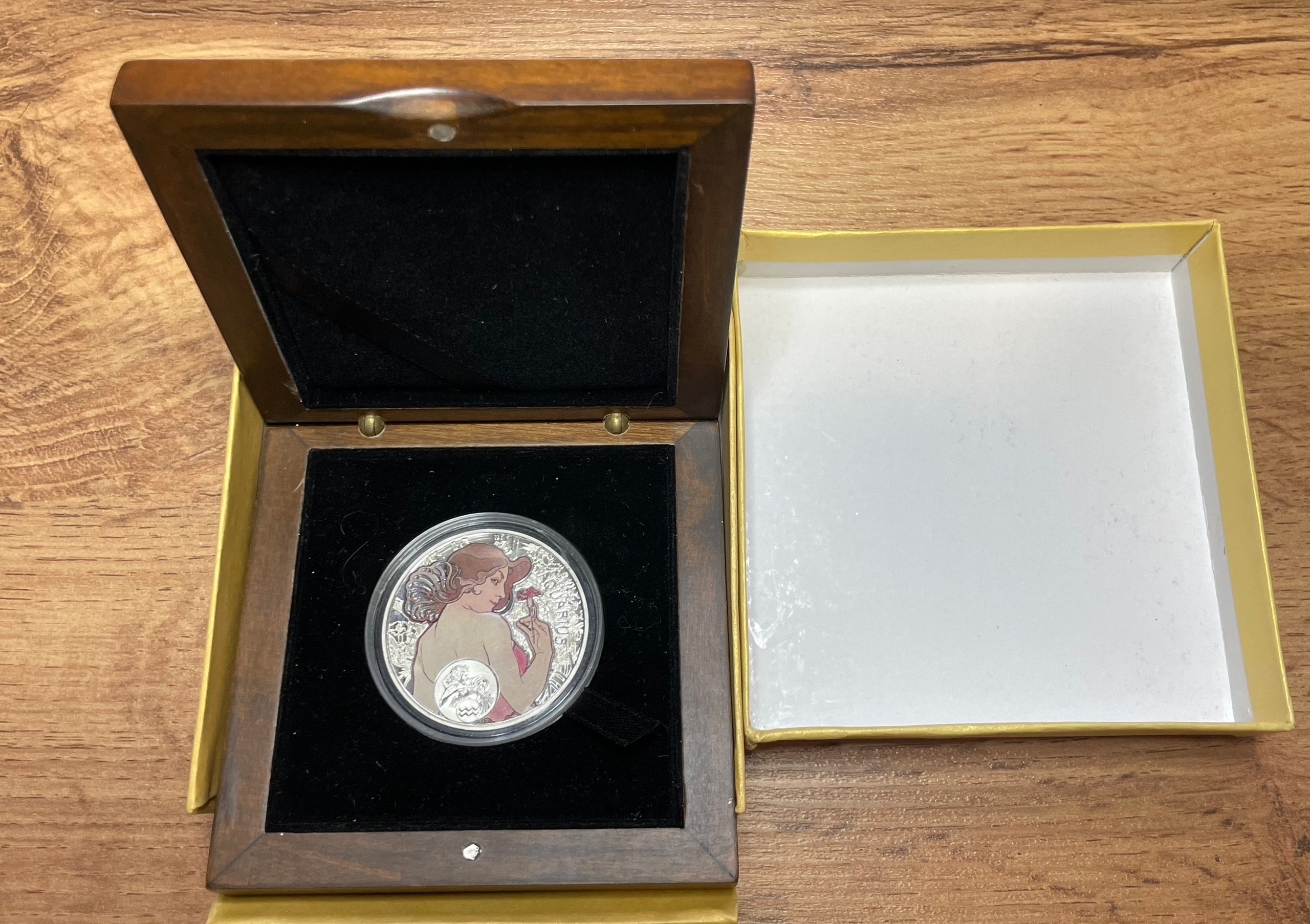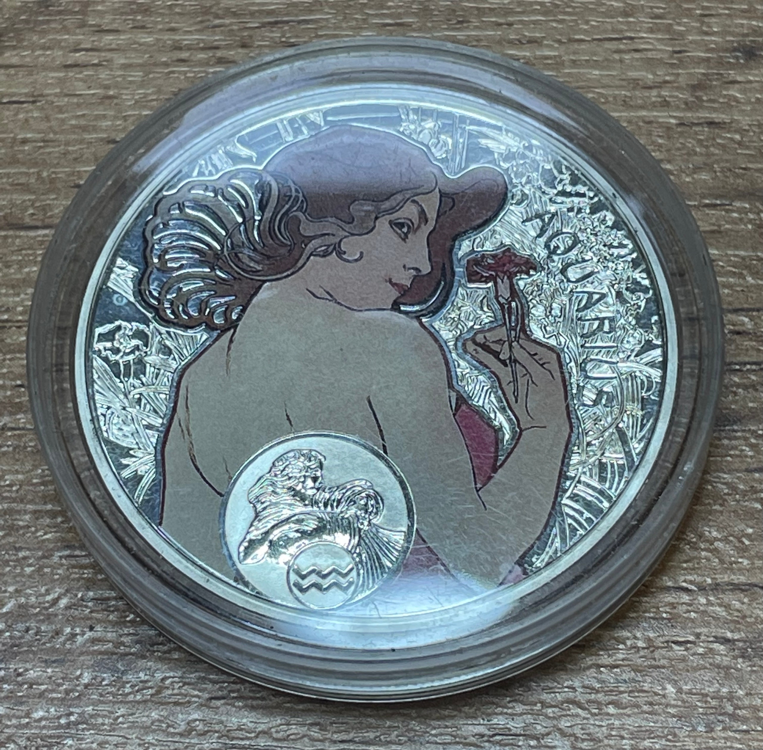 K16887 2010 Ниуэ 1 доллар Знаки зодиака, Водолей, Ag-925, в деревянном футляре